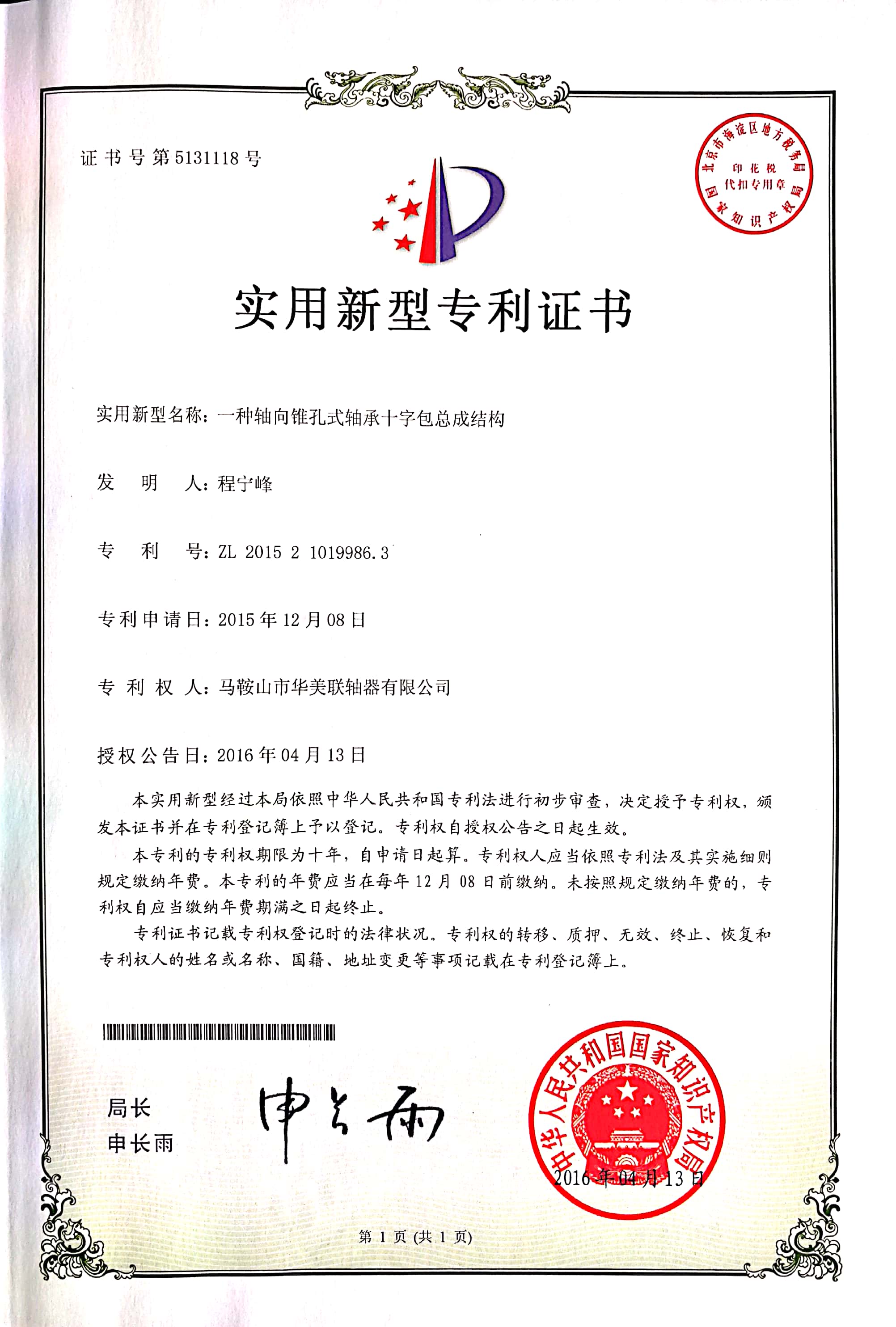 下一個:實用新型專利證書